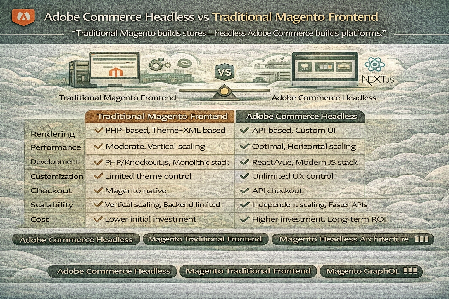 “Traditional Magento scales infrastructure — headless scales architecture.”